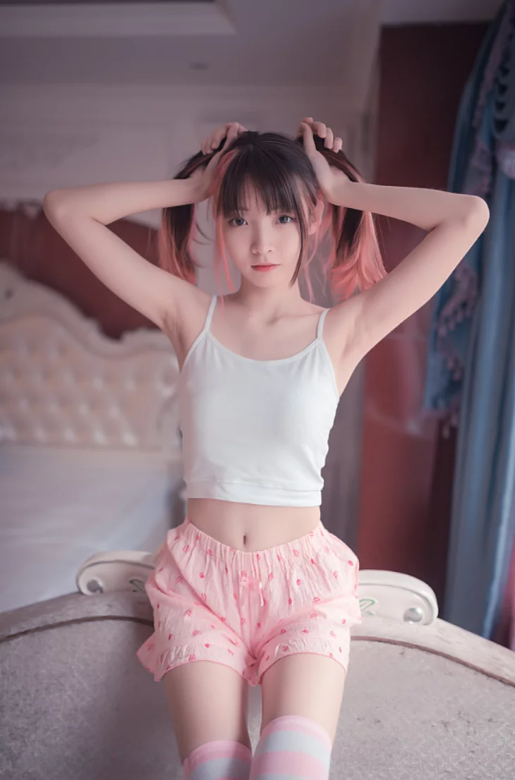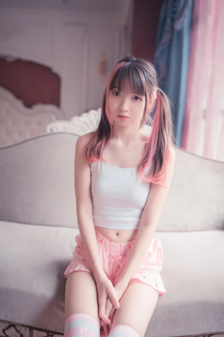小元我呢,看过不少COSER的作品,有的是走酷炫风,有的是走唯美风,但祖木子这组“粉白条纹小可爱”,给我的感觉,是一种恰到好处的“刚刚好”。她不是那种刻意去扮嫩,也不是那种用力过猛的x感。她就像是夏日午后,透过窗帘洒进来的那束阳光,温暖却不刺眼,明亮却不灼热。