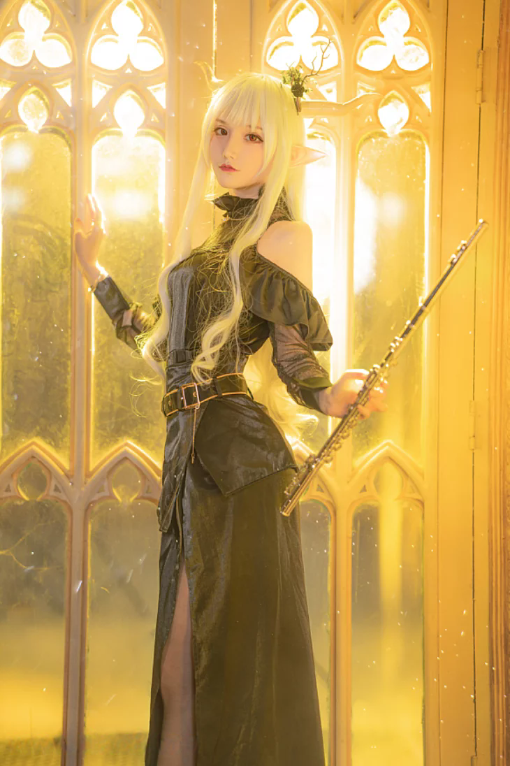 很多人以为COS就是换套衣服比个耶,但仙九Airi显然不满足于此。她把“音乐会”玩成了沉浸式剧场:排练时的专注、登台前的颤抖、演奏时的癫狂……22张图串起来,根本就是一部微电影。尤其是到了17张,她背对镜头站在空荡舞台中间,影子被拉得老长——那一刻,我差点以为自己误入了237号房间。