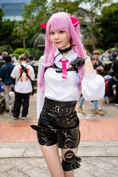 此次“acosta!”活动选址台北松山文创园区,绿意盎然的庭园、清澈的喷泉与复古红砖厂房为Cosplay拍摄提供了极佳背景。而Karechan正是在这里大放异彩 – 在最后一天登场的她,如一颗粉红色炸弹般在人群中炸开,成为众多摄影师争相捕捉的焦点。有人说,那个池塘边她双马尾轻甩、轻踏高跟的瞬间,连喷泉都羞得跳高了一米。