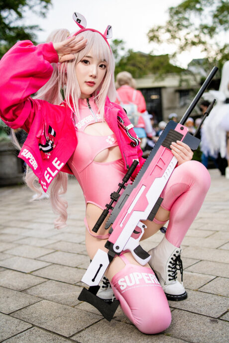 爱丽丝,是集战斗力与萌力于一身的神级角色,拥有甜美又神秘的气质,身穿未来科技风战斗服,一边卖萌,一边开枪,妥妥的“战场小甜心”。而百變恩恩ん的cos,则将爱丽丝的“性感与可爱”精准拿捏到了一个极致!她选择在松山文创园区这个风景如画的场地拍摄,池塘、喷泉、绿植作背景,宛如未来战姬穿越现实,瞬间杀进我们的视觉中枢!