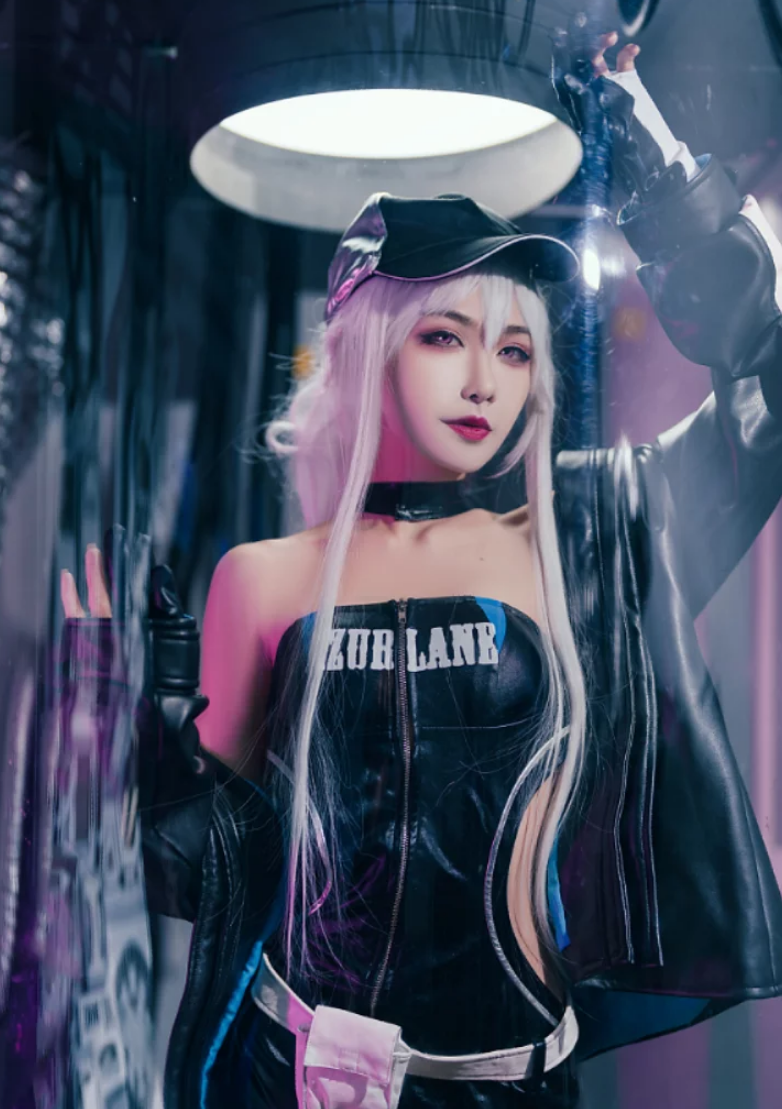 我们今天要看的这套,就是典型的“反差cos”,主角,是《碧蓝航线》里的企业。让她去干嘛呢?去当赛车女郎。