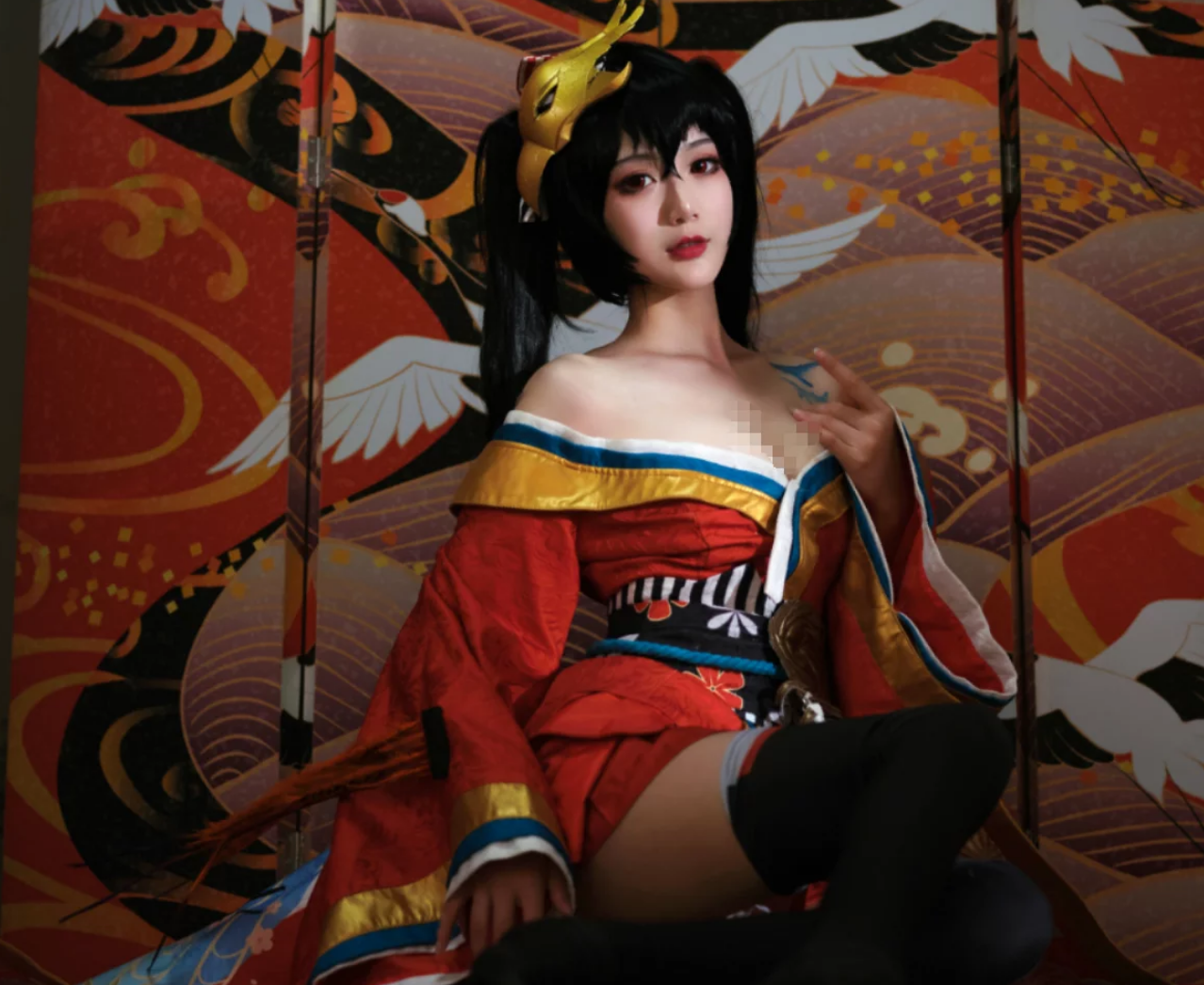 这就是优越的cosplay。它不是简单的模仿,而是深度的理解和再创造。大梨子没有把大凤简化成一个病娇的标签,她把大凤的层次感给表现出来了。你看她跪坐在榻榻米上,姿态优雅端庄,完全符合一个传统女性的形象。但就是这种高点的优雅里,反而透出一种更强烈的控制欲。