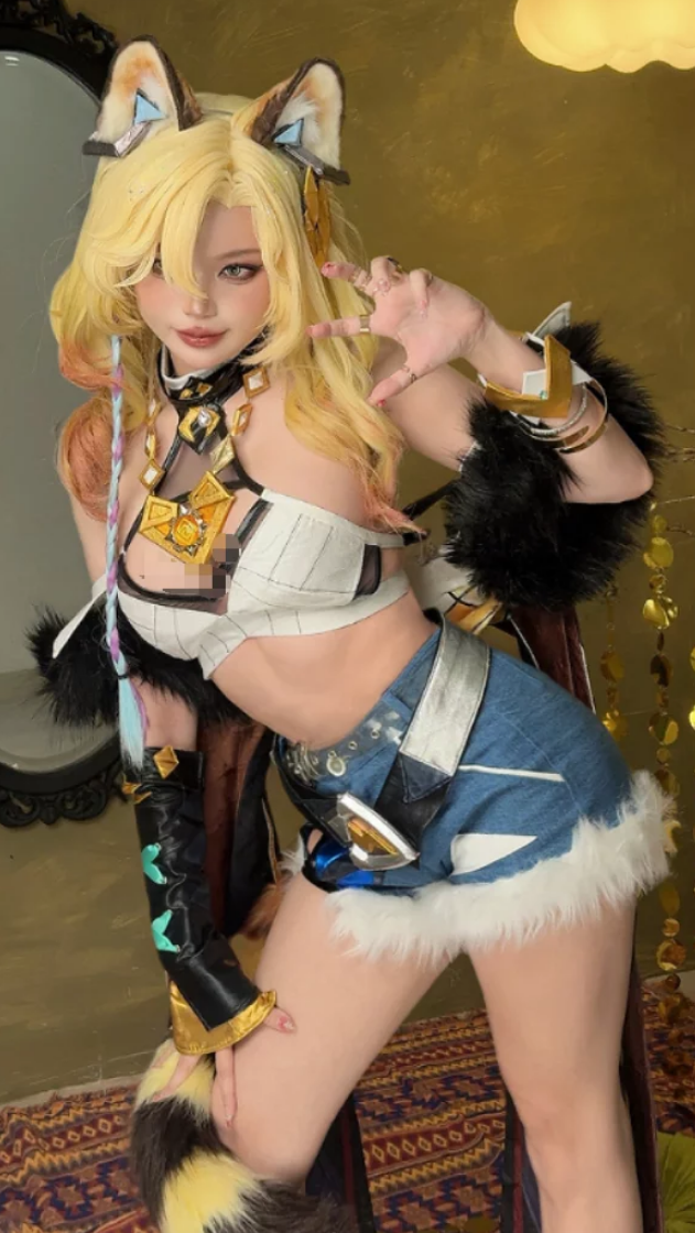 先说说Xilonen这个角色吧。熟悉原神的玩家都知道,Xilonen是纳塔地区的五星角色,设计灵感带着浓浓的异域风情,像是从古老传说里走出来的豹女,野性又不失优雅。ZinieQ这次的还原,简直是把Xilonen的灵魂给cos出来了。