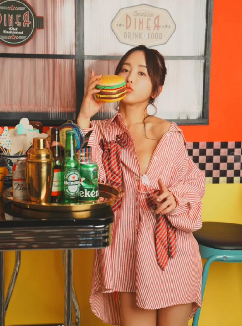 对比起来,日常穿衬衫的女孩,总觉得少了点什么。想想那些地铁里的上班族,衬衫扣得严严实实,头发扎成马尾,背着包赶路。いくみ这里不一样,她把衬衫当成了道具,每一张照片都像在讲故事。第y张,她靠在沙发上,手托着下巴,衬衫的纽扣解开了两颗,露出锁骨的弧线。背景的灯光从侧面打来,拉出长长的影子。