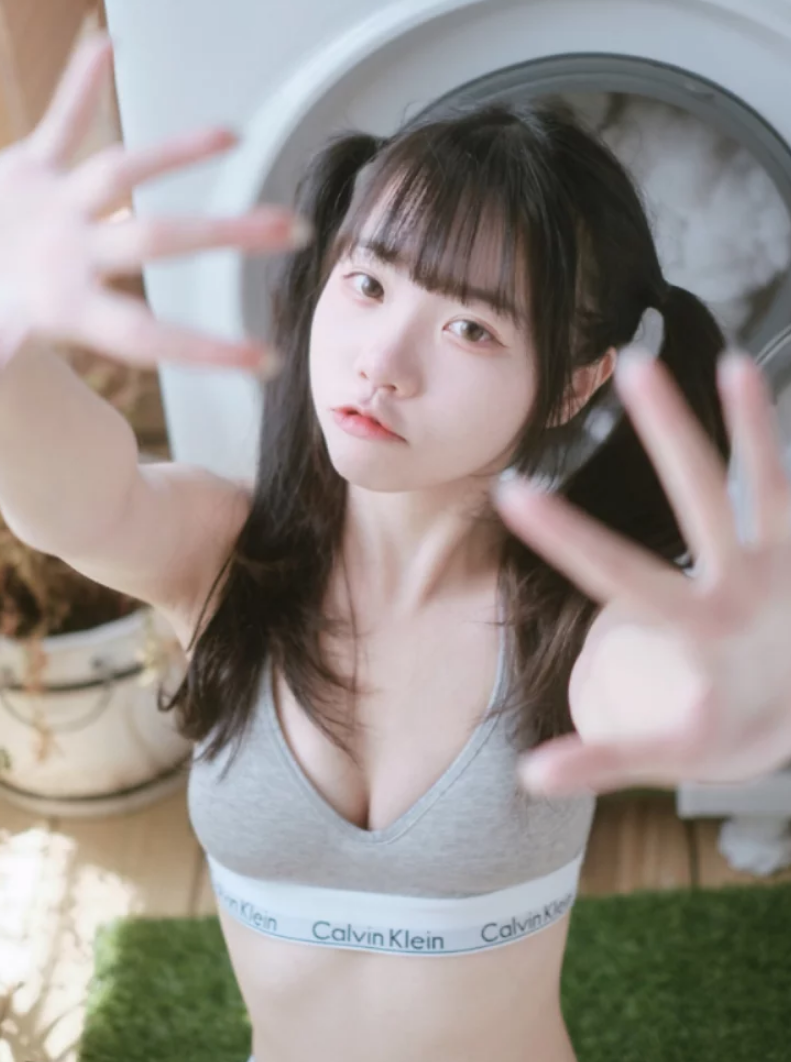 这组照片的魅力,还在于可可对细节的把控。她没有选择浓妆艳抹,而是用淡淡的裸妆,突出皮肤的水润感。头发随意地扎成低马尾,几缕碎发散在耳边,像是刚洗完澡还没来得及收拾。这种“未经雕琢”的状态,反而让她的可爱多了一份真实感。有一张照片,她抱着一个大大的抱枕,蜷在沙发一角,嘴角微微上扬,像是在回味什么好笑的事。